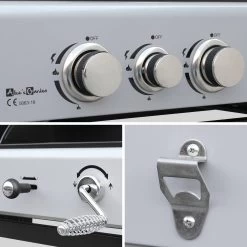 Deze barbecue kan worden gebruikt met gasflessen Propaan (G31 – 37 mbar) of Butaan (G30 – 28/30 mbar) van 6 tot 13 kg. Om optimaal van uw gastoestel te kunnen genieten, vooral bij koud weer (als de temperatuur dichtbij 0 ° C ligt), wordt sterk aanbevolen om gebruik te maken van propaangas.