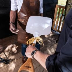 De schep is stijlvol en een echte eyecatcher. Hang de pizzaschep als je hem niet gebruik mooi in het zicht. Gebruik hier het handige, leren koord voor of het handvat. Ideaal als cadeau voor hem of haar. Verras de pizzaliefhebber!
