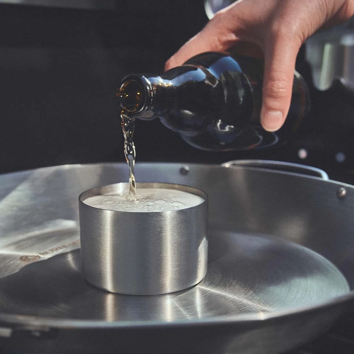Zin in bierblikjeskip de luxe? Dat kun je krijgen – zelfs zonder blik, want dat lijkt ons niet zo gezond. De gevogelte-houder van je kipbraadslede is tegelijkertijd een soort van aromabak die je met 190 ml bier, wijn of bouillon kunt vullen. Kip erop en grillen maar! Op die manier wordt je vlees niet alleen lekker knapperig aan de buitenkant maar ook heerlijk mals en sappig aan de binnenkant.