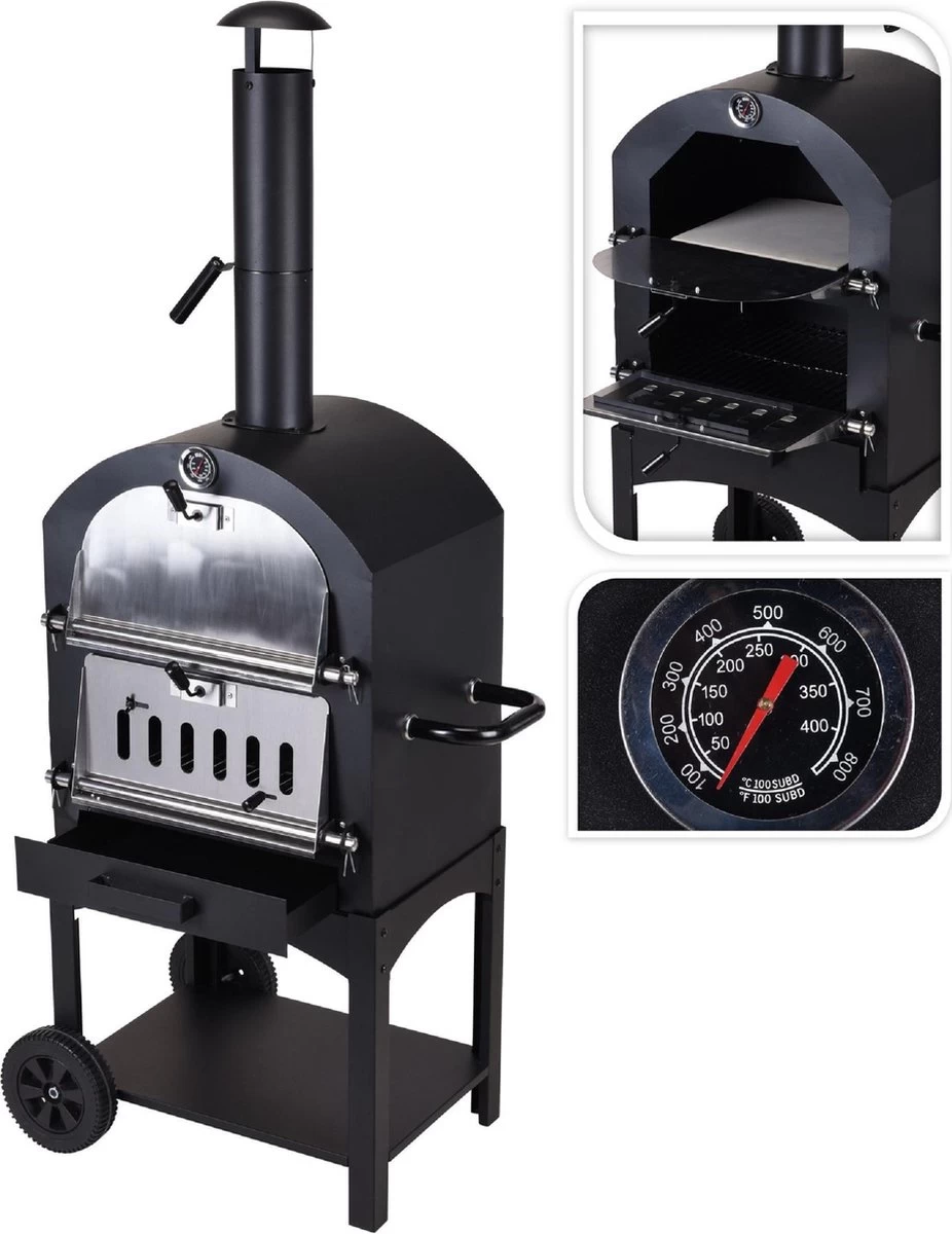 Merkloos MaxxGarden Pizza Oven – Smoker Barbecue Houtskool 45 X 65 X 158cm