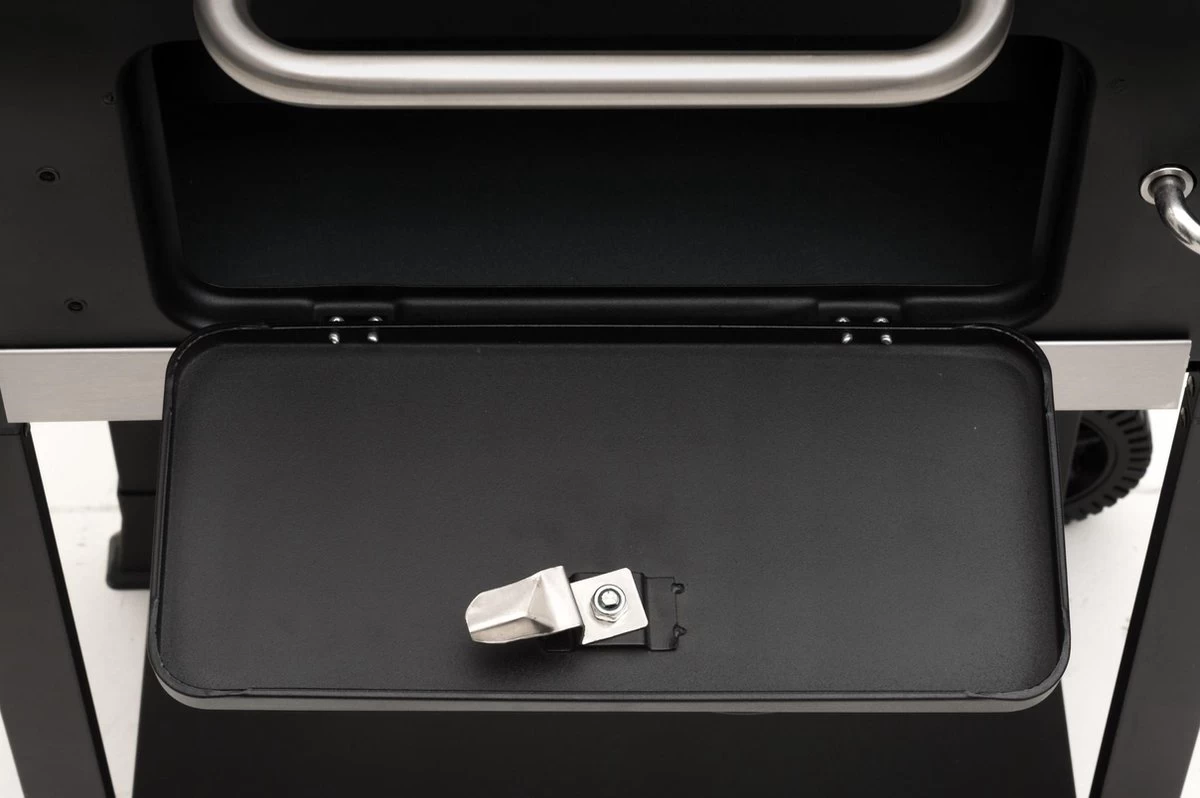 Fraaie houtskool barbecue met in hoogte verstelbare kolenrooster. Het grilloppervlak betreft 45 x 32 cm, daarnaast is het grillrooster gemaakt van verchroomd draadstaal en bestaat uit 2 stuks van 22 x 41 cm. Onder de klep is een warmhoud rek van 40,5 x 16 cm aanwezig van verchroomd draadstaal.
