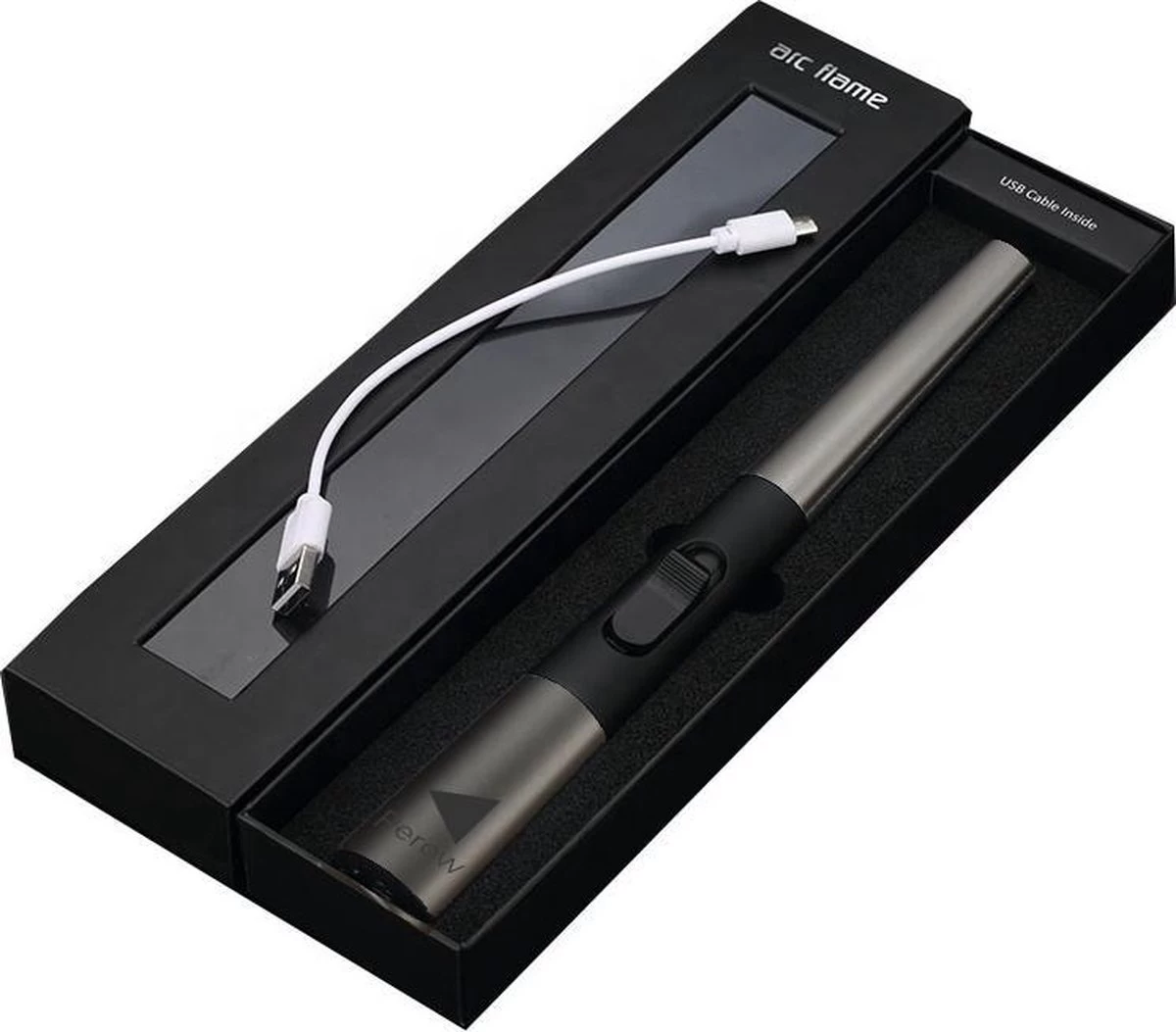 Oplaadbare Lange Elektrische Aansteker – Duurzame Plasma Aansteker – Luxe Aansteker – Inclusief Cadeauverpakking – BBQ – Kaarsen – Zwart